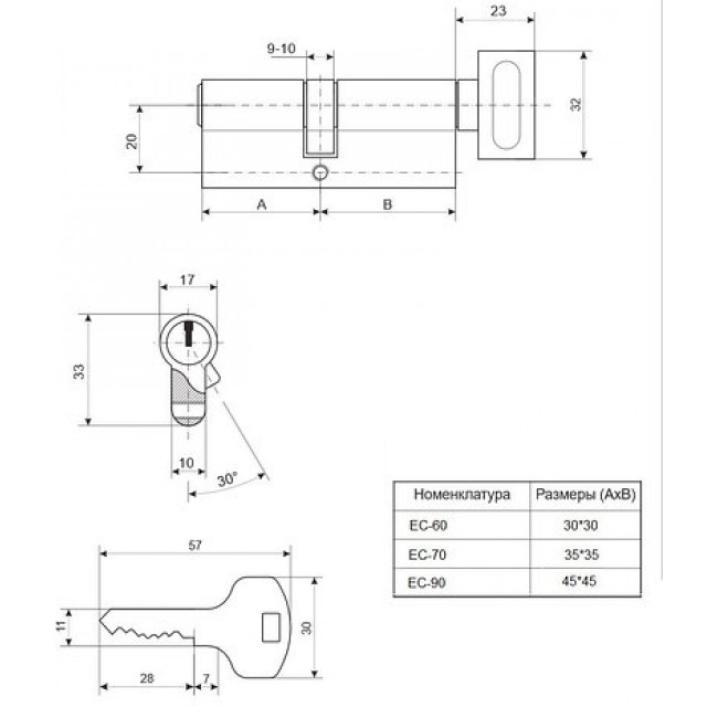 - Индекс EC - английский ключ (средний уровень защиты цилиндра от подбора ключа)