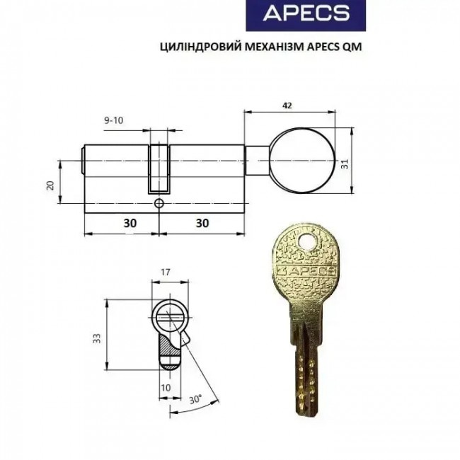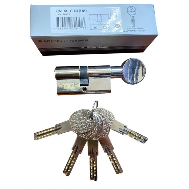 Теги: Цилиндр APECS QM-60-C-NI никель ключ-вороток