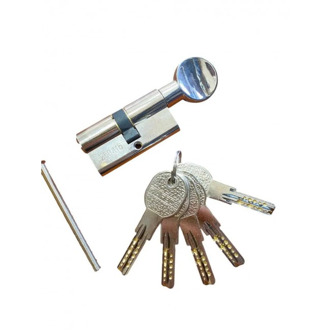 Комплектация: Включает цилиндр, 5 профильных (перфорированных) ключей, крепежный винт и паспорт изделия.