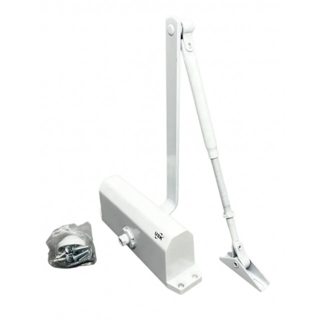 Дверной доводчик USK 702 предназначен для установки на офисную дверь и дверь в жилых помещениях весом от 40 до 60 кг и служит для закрывания дверей автоматически.