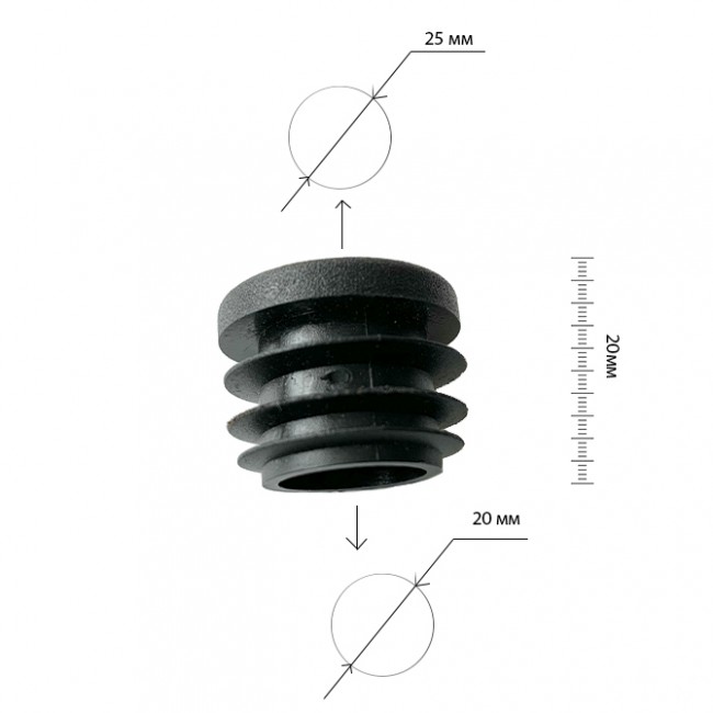 Заглушка внутрішня для труби діаметром 25 мм, яка використовується, як опора для меблів, або для конструкції систем, вітрин і тд.