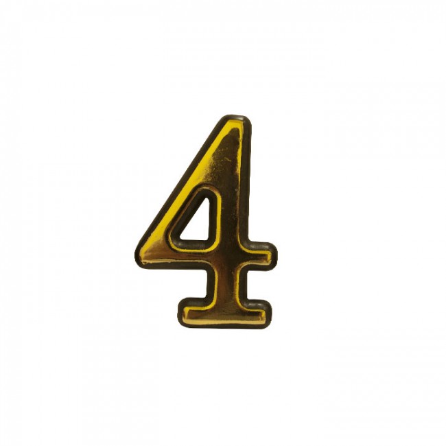 Номерок на дверь самоклеющийся пластиковый №4 Высота: 50мм Цвет: РВ (Золото) Материал - пластик