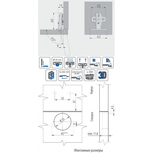 Теги: Петля накладная GTV с планкой H=0 45мм