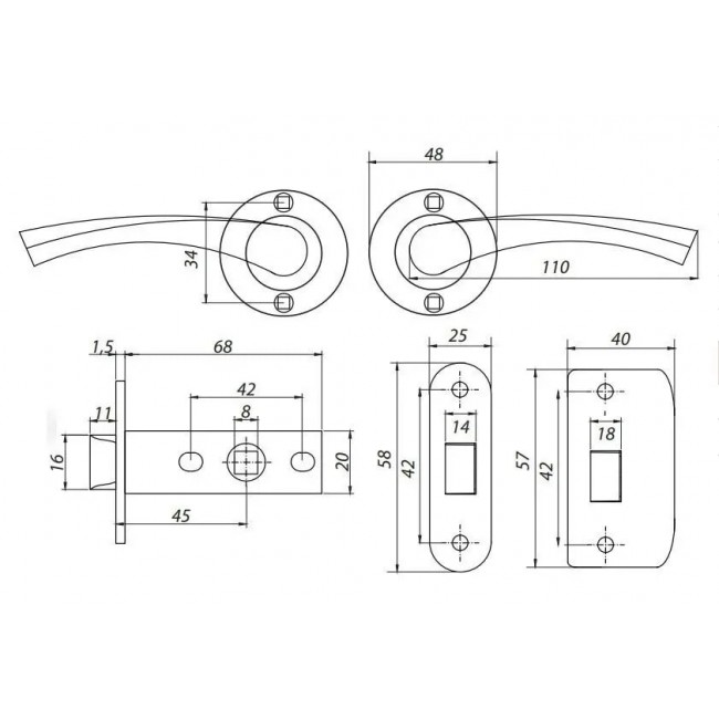 Ручка защелка в комплекте уже полностью готов для врезки в дверь