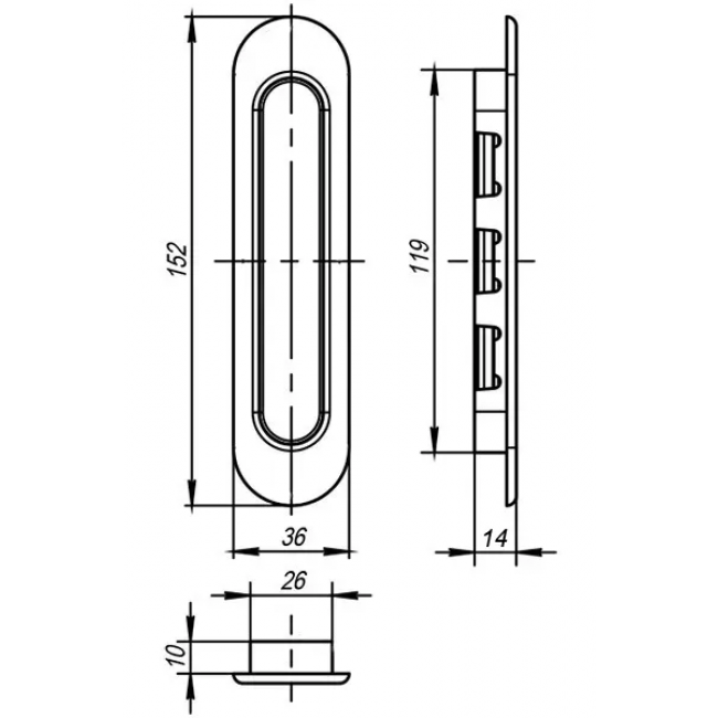 Ручки для раздвижной двери (без замка) I-05 – это утопленные в полотна ручки (без замка).