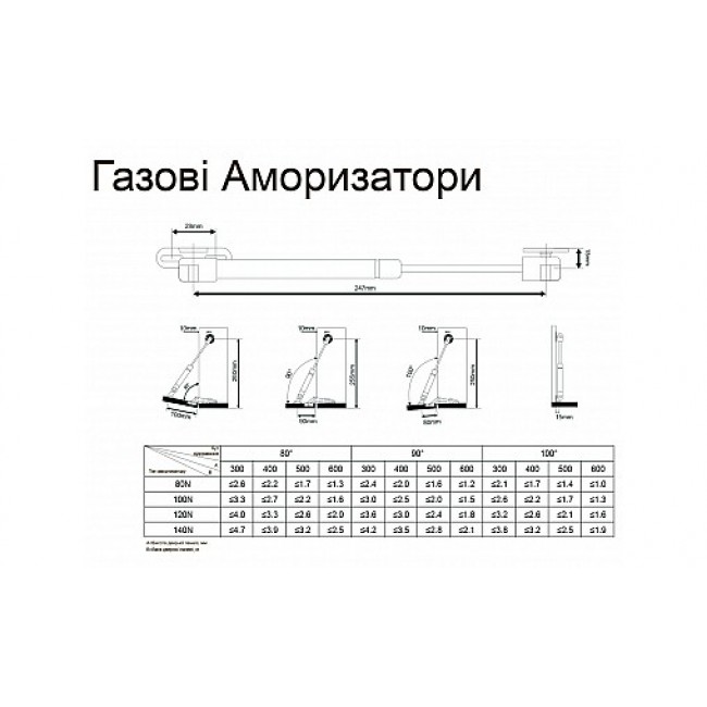 Комплектація виробу: Амортизатор, кріплення - 2 шт, шурупи - 5 шт, інструкція монтажу
