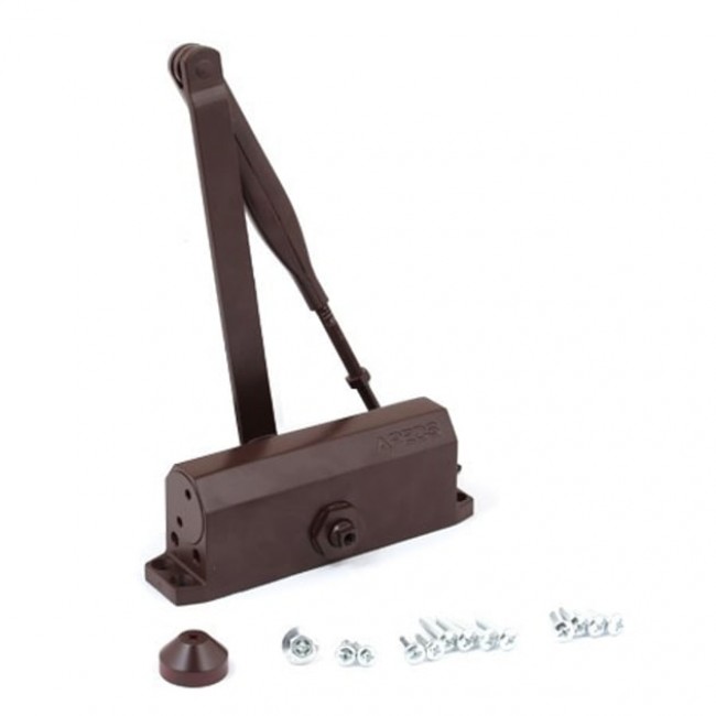 Apecs DC-20.4/1050/085-A2-BR – накладний доводчик з верхнім типом монтажу, який підходить для встановлення на двері вагою 85 кг та шириною полотна – 1050 мм.