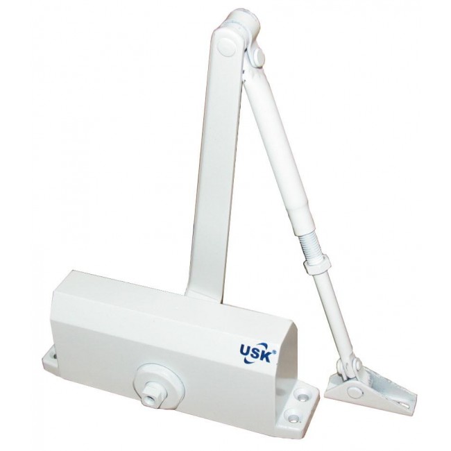 Дверний доводчик USK 702 призначений для встановлення на офісні двері та двері в житлових приміщеннях вагою від 40 до 60 кг і служить для закривання дверей автоматично.
