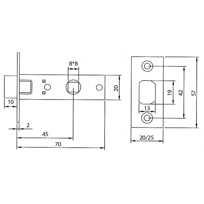 Корпус замка сталевий, гальванізований. Є монтажні отвори для установки дверних ручок на стяжки.