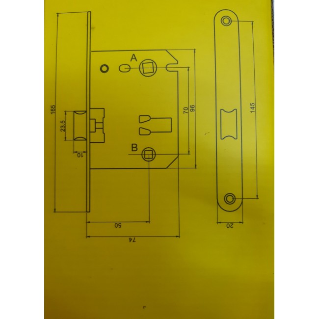 Корпус замка сталевий, гальванізований або оцинкований. Є монтажні отвори для установки дверних ручок на стяжки.