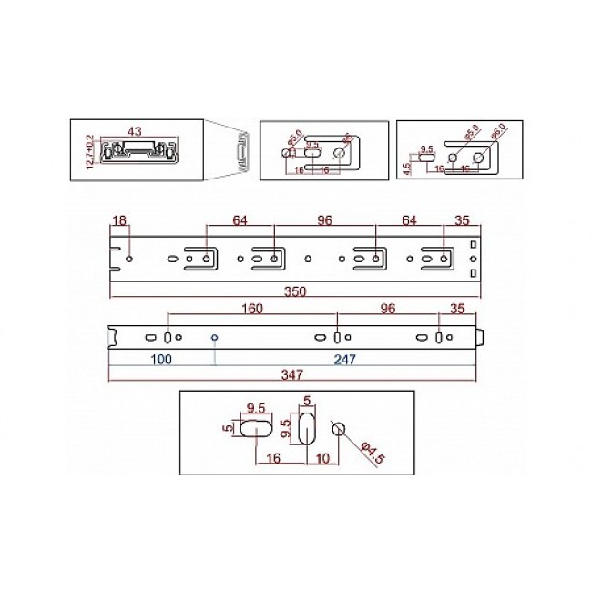 Направляючi телескопiчнi L-350мм Н-43мм
