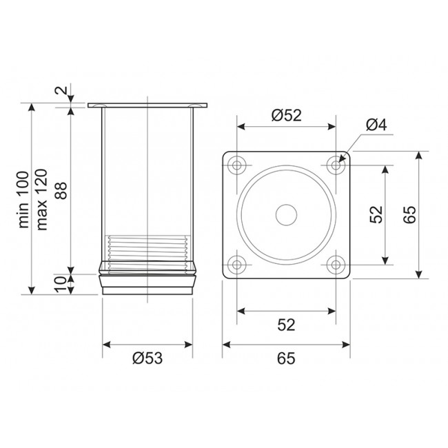 Теги: Опора меблева сталь 50х100мм чорна, з регулюванням