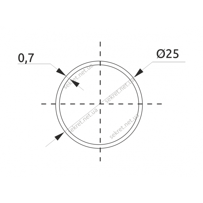 Труба D=25мм (0,7 мм) хром, довжина: 3 метри
