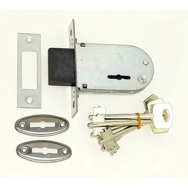 Комплект поставки: Замок, Комплект ключів (5 шт), У відповідь планка, Декоративні накладки 2 шт, Комплект кріплення, Упаковка