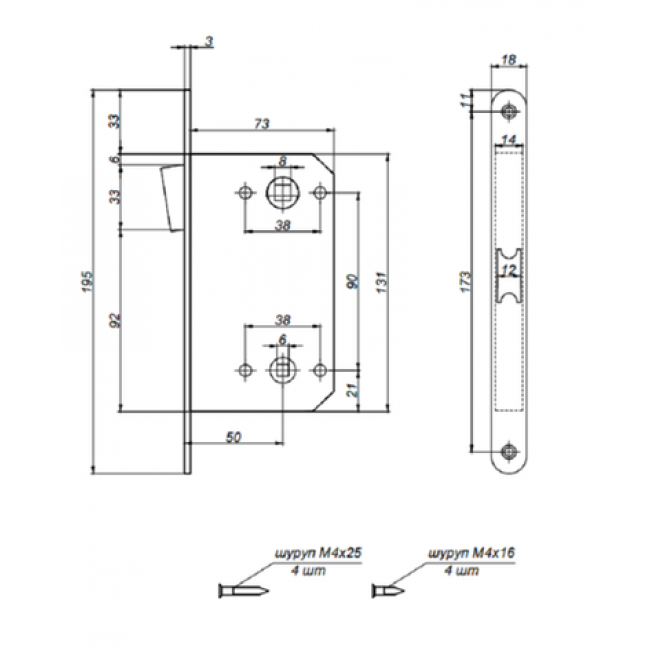 Межкомнатная защелка с возможностью установки дверной ручки сечением квадрата 8 мм и поворотника сечением 6 мм. Благодаря своей конструкции, защелка работает бесшумно.