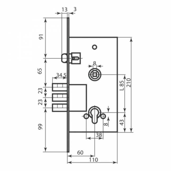 Размер корпуса замка: 85×72×16 мм