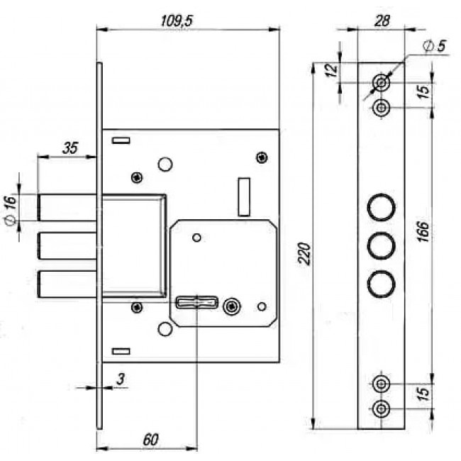 Расстояние от лицевой планки до оси ключевой 60 мм.