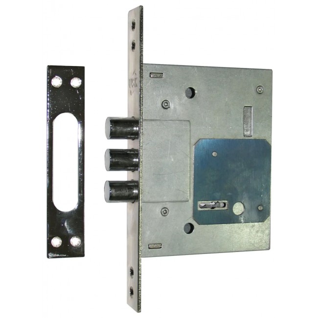 Для защиты от высверливания хвостовика ригеля на корпусе замка установлены закаленные накладки. Корпус замка выполнен из оцинкованной стали.