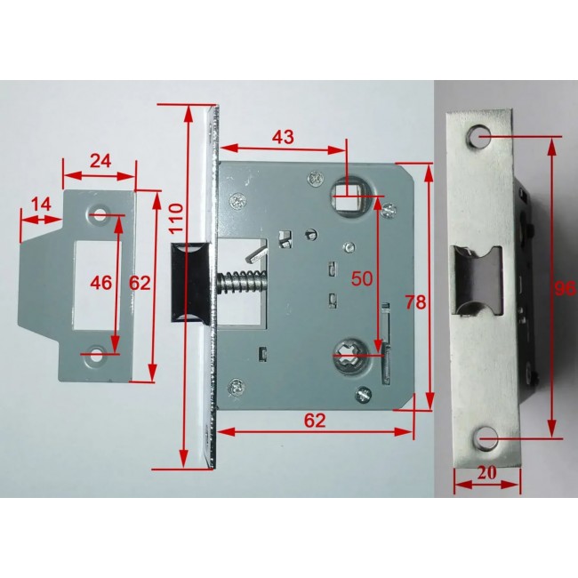 Размер корпуса замка: