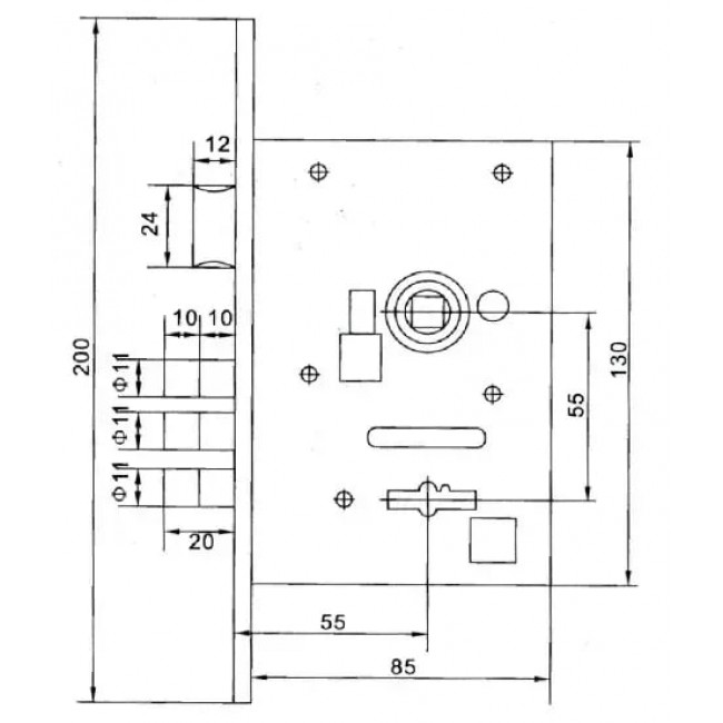 Backset замка - 55 мм (от планки до центра ключевой скважины)