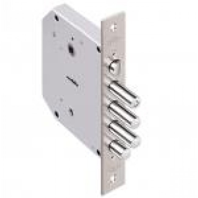 Базальт 1.05.41.5.1.1 - врезной замок для дверей любого типа, толщина корпуса 20 мм. Три стальных цилиндрических стержня диаметром 14 мм, вылет 40,4 мм, 4-х ходовый механизм секретности. Дополнительный одноходовый засов – стальной стержень диаметром 14 мм, выход 21,5 мм, используется как задвижка, управляется ручкой-заверткой, расположенной с внутренней стороны двери.Универсальная защелка диаметром 16 мм: управляется фалевой ручкой. Скос защелки выполнен по радиусу, что обеспечивает комфортное захлопывание двери и меньший износ. Защита от криминального и силового взлома, высверливания, выдавливания, перепиливания.