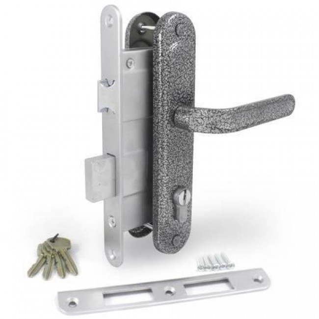 Замок врезной Мотор Сич-ЗВ-7-с ручками серебро. Замок предназначен для деревянных и металических дверей жилых и общественных помещений. Замок закрывается на засов с обеих сторон поворотом ключа. Защелка открывается как при помощи ручки, так и при помощи ключа. Замок универсальный, может устанавливаться на двери левого и правого открывания. Цилиндр ключ/ключ 70 35/35мм