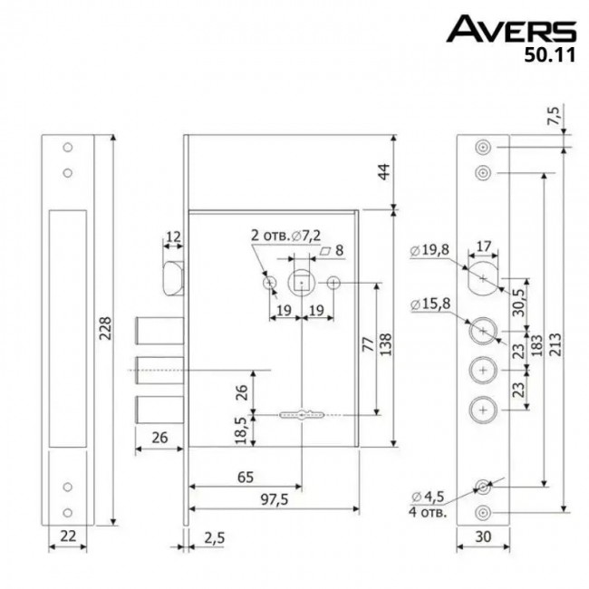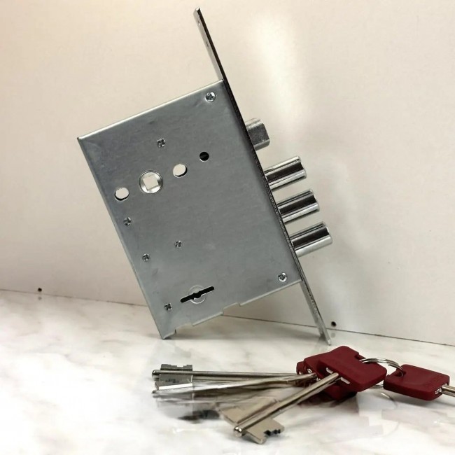 Врезной сувальдный замок Avers 50.11 — это основной замок, предназначенный для установки в металлические входные двери толщиной от 40 до 115 мм. Модель является бюджетным аналогом популярного замка Гардиан 30.11 и совпадает с ним по посадочным размерам.