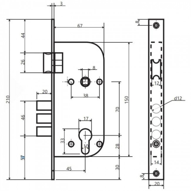 Замок врезной модели 1500 с межосевым расстоянием 70 мм предназначен для закрывания левых и правых дверей, которые открываются как внутрь, так и наружу. Язычок замка переворачивается для левого или правого открывания без разборки корпуса.