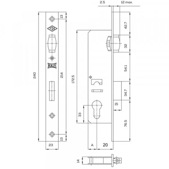 размер механизма замка идеально подходит для установки в профильную трубу (калитки);