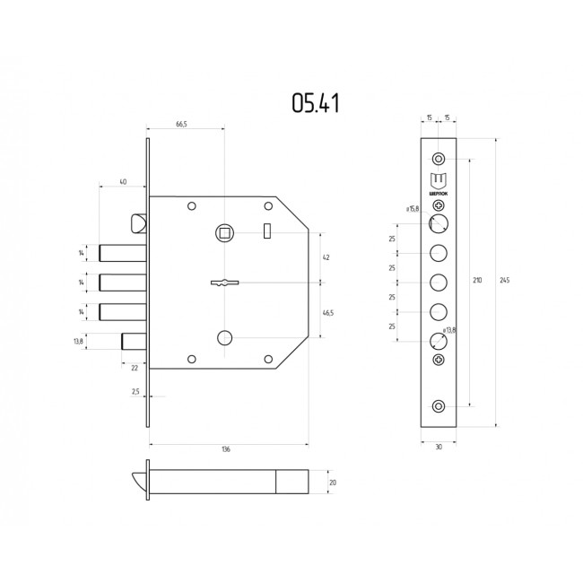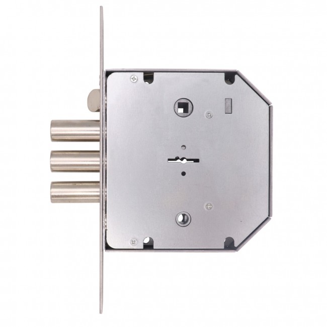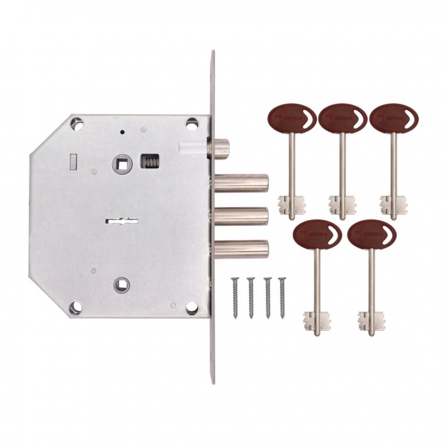 Sherlock 05.41 — надежный врезной сувальдный замок, предназначенный для установки во входные или межкомнатные двери. Замок имеет усиленную конструкцию, универсальность монтажа и обеспечивает высокий уровень фиксации дверей благодаря трем стальным ригелям увеличенного диаметра.