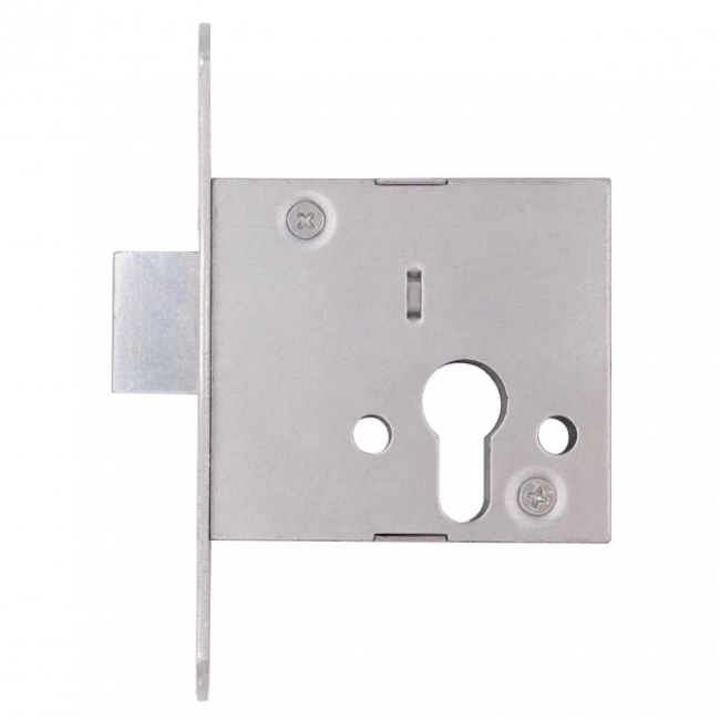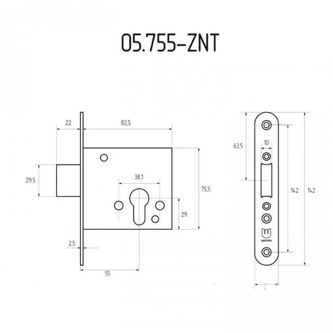 Замок врезной Шерлок 05.755-ZNT. Цилиндровый механизм с ключами продается отдельно. Используют для запирания входной двери квартиры и подсобных помещений. Конструкция замка позволяет устанавливать его на правую и левую дверь и использовать его с двух сторон.