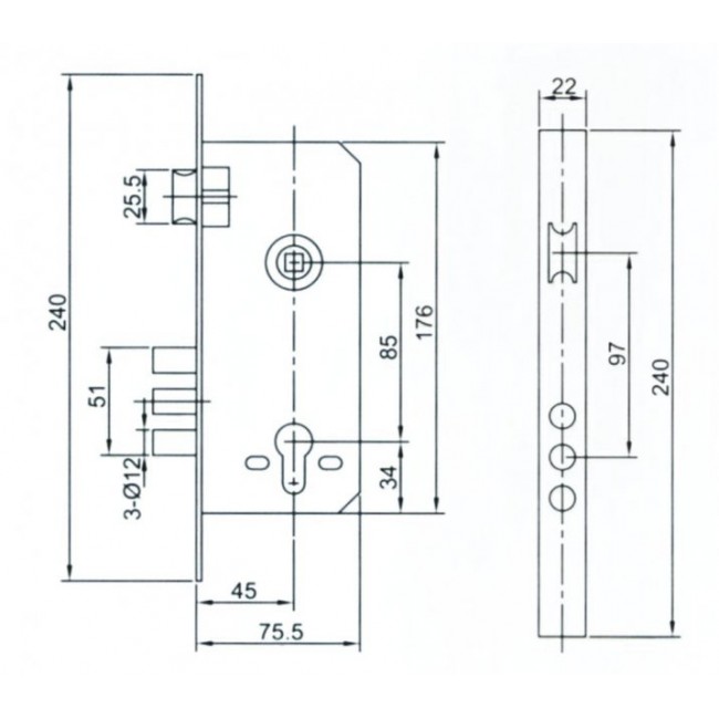 Замок врезной USK 6005 3R AB